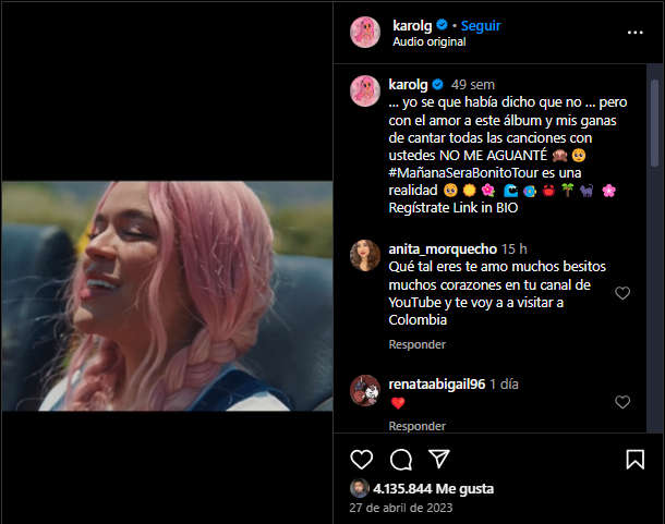 Karol G se presentó el 5 y 6 de abril a las 8 p.m. en el Estadio Nemesio Camacho el Campín en Bogotá, donde sucedieron ciertas situaciones que han generado polémica. Desde las 3 p.m. de la tarde los fanáticos de la cantante hicieron fila para acceder al evento de Mañana será bonito LATAM tour. La artista ha afirmado que este será su última gira durante un buen tiempo. Incluso, dudaba de si hacer este tour, pero el 27 de abril de 2023 anunció su inicio: