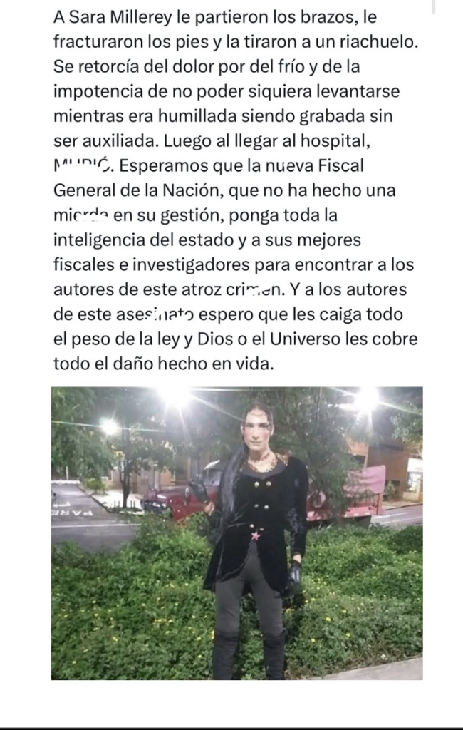 Ante esta situación, la sociedad no puede seguir siendo espectadora pasiva. Se hace imperativo romper el silencio y transformar la indiferencia en acciones concretas que protejan a las personas LGBTIQ+ y, en particular, a las mujeres trans, quienes históricamente han sido las más vulnerables frente a la violencia y el odio. La memoria de Sara Millerey debe convertirse en un llamado a la acción para reestructurar las políticas de protección, capacitación policial y sensibilización ciudadana, orientadas a erradicar la transfobia en todas sus formas.