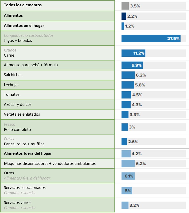 El IPC es el indicador que mide qué tan rápido y cómo cambian los precios en la economía, tanto de bienes como servicios. Mide todo, desde frutas y verduras hasta cortes de pelo, boletos de conciertos y electrodomésticos para el hogar. Es un análisis exhaustivo, para comprender mejor el caso de EE.UU. CNBC desarrolló la siguiente tabla. La cual muestra elementos y su porcentaje de aumento respecto a 2023.