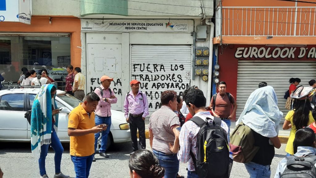 Más de 100 docentes provenientes de los municipios de San Miguel Totolapan, Heliodoro Castillo, Leonardo Bravo, Eduardo Neri y Chilpancingo, tomaron la Delegación de Servicios Educativos de la Región Centro, y bloquearon la avenida Vicente Guerrero de esta capital.