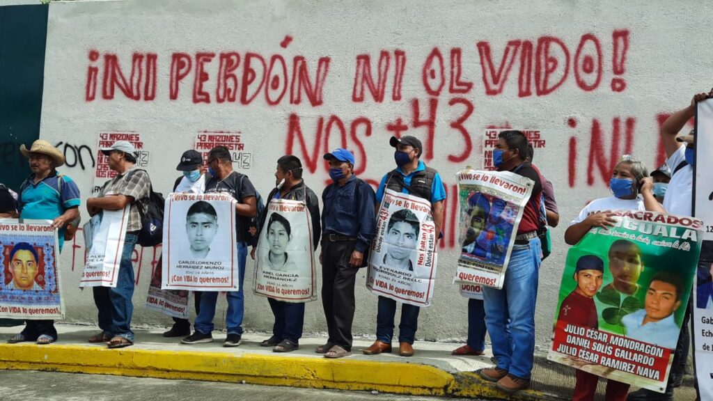 El contingente de alrededor de 500 personas llegó a la sede de la Ciudad Judicial ubicado sobre la carretera federal Chilpancingo-Iguala donde realizaron un mitin a seis años de la desaparición de los 43 y el asesinato de otros tres jóvenes.