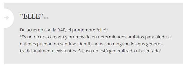 MILENIO DIGITAL (2020) RAE incorpora pronombre “elle” y “transfobia” a su Observatorio de palabras. Milenio. Recuperado el 27 de Octubre del 2020 en: https://www.milenio.com/cultura/rae-incorpora-pronombre-elle-observatorio-palabras