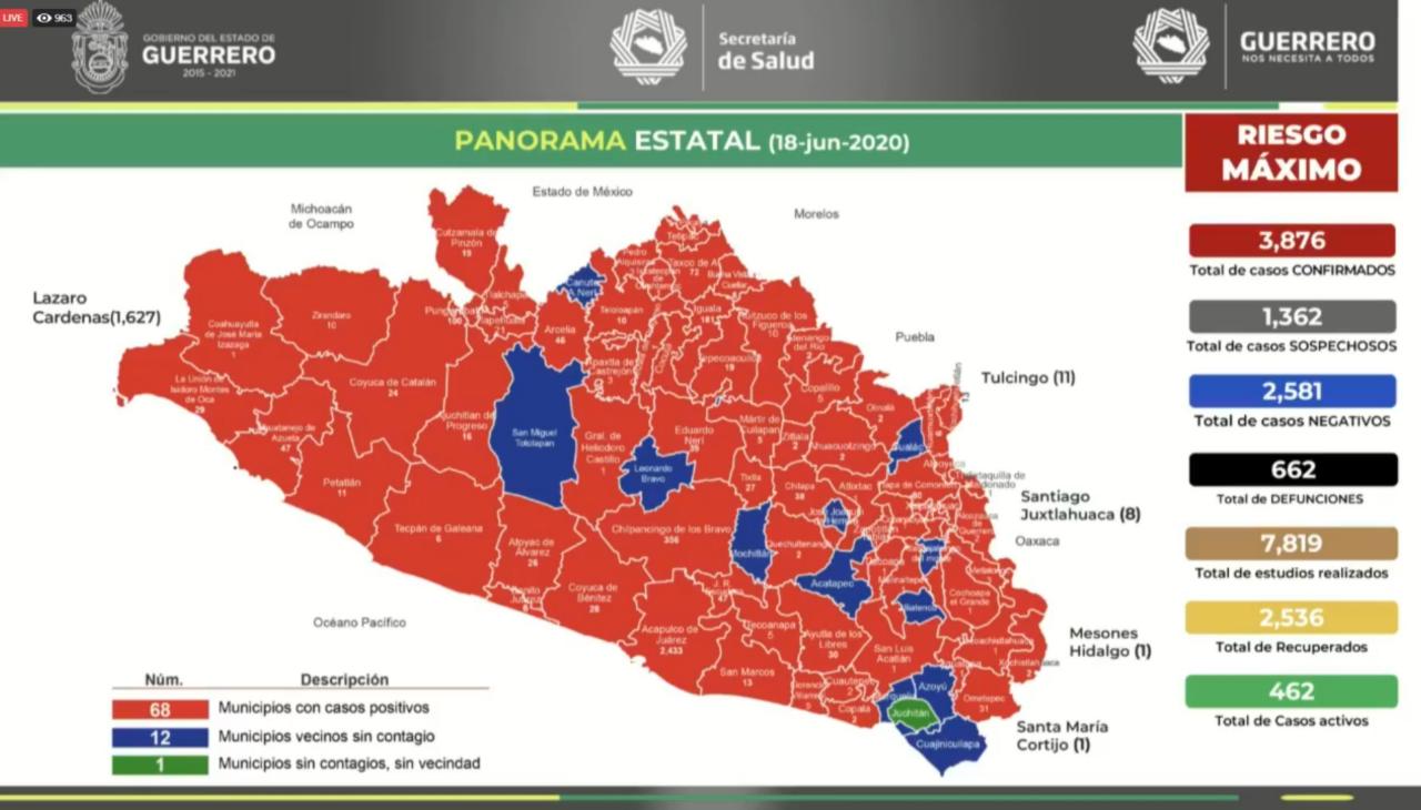 Chilpancingo, Guerrero.- El Estado de Guerrero registró un nuevo repunte epidémico por Covid-19, con 151 casos nuevos, para acumular 3 mil 876 contagios y 662 defunciones, siendo el Municipio de Acapulco el epicentro de la epidemia.