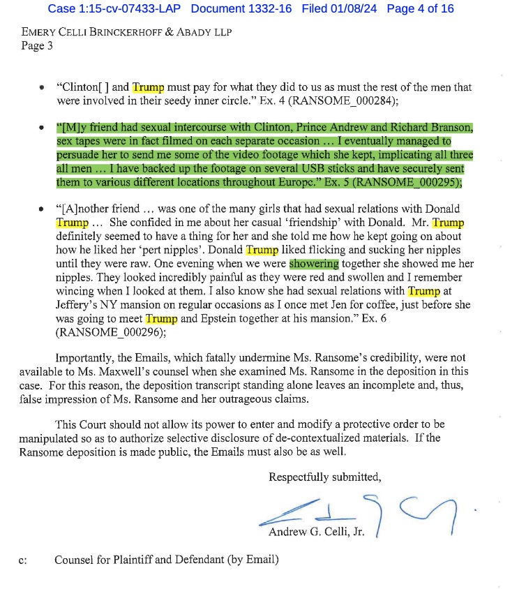 Specifically, Sarah Ransome alleges that Trump received sexual services via many connections to the girls in the sexual trafficking ring, specifically, one stands out: a ‘friendship’ with a direct friend of Ransome. In other documents, Trump is mentioned as someone to have aided and abetted the movement of these minors or sex trafficking ring individuals through his hotels. At least, one can clearly claim that Trump looked the other way per these court documents.